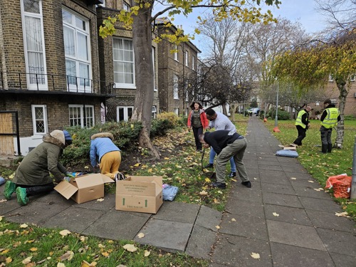This was a community bulb planting morning across the Denmark Hill, Ashworth Close and Harbord Close Estate. Supported by amazing volunteers from Ginkgo Gardens Ltd, Fixatex Ltd and Evans & Shea Ltd, we joined several residents in planting daffodil bulbs throughout the communal garden spaces, carparks and along the public right of way. Fixatex and Evans & Shea generously donated 6,000 daffodil bulbs, several bags of compost, new gardening tools such as spades and kneelers and the kind help of their volunteers.